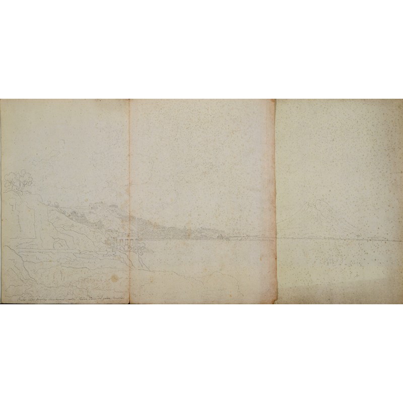 to comprise a panorama of the Bay of Naples inscribed Naples under Vesuvius Herculaneum, portici, Resina, Torre del greco, Pompeia, style of Francis Towne, sheet 43 x 86cm. [see illus.]; a table top still life (pencil) and a watercolour study, both ascribed to Peter de Wint; a pencil drawing of `Satan Aroused: Eve's Dream`, style of Theodore van Holst; `Pheasant Shooting` by Robert Laurie, watercolour over an etched line (after Howitt?); and two botanical watercolours by Annie Feray Mutrie (7)