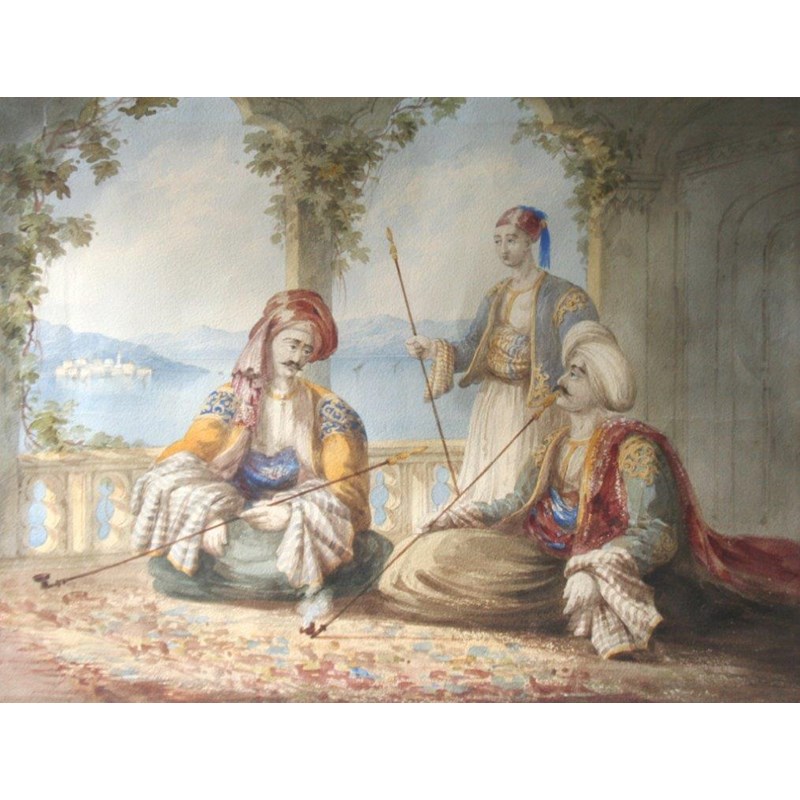 WILLIAM PAGE (1794-1872) TWO GREEKS WITH ALBANIAN PAGE Watercolour 28 x 37cm.