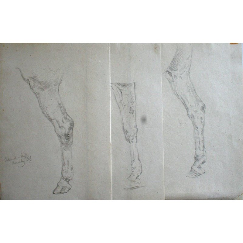 PAGES FROM A SKETCHBOOK, c.1823-1824: THREE STUDIES OF A HORSE'S LEG [see illus.]; STUDIES OF A LADY'S CALF; FIGURE STUDIES; STUDY OF A SPANIEL; HEAD AND FIGURE STUDIES; A BIRD IN A TREE