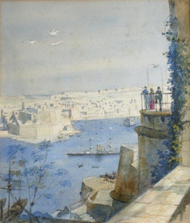 with another of the vessels at Valletta, by the same hand, 16.5 x 23.5cm.; a `Souvenir of Malta` (book of 32 small black and white photographs, c.1950); and a modern colour print of a drawing of Malta Harbour in 1764. (4)