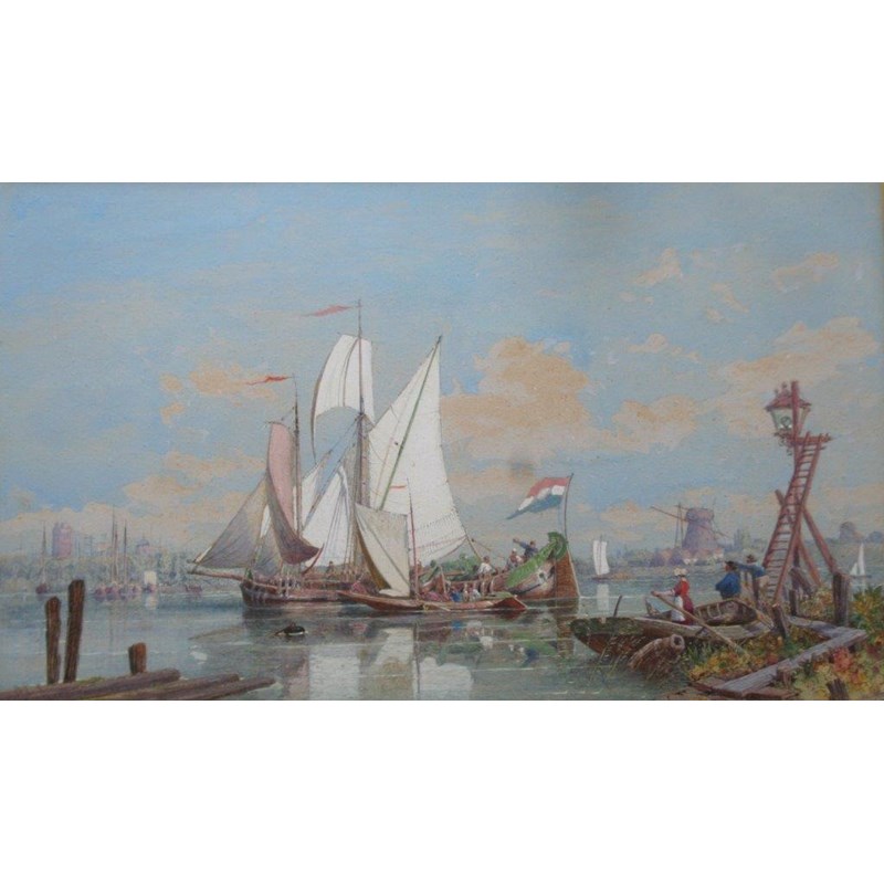 GEORGE HENRY ANDREWS, RWS (1816-1898) SCENE ON A DUTCH RIVER Signed and dated 66, watercolour and bodycolour over pencil 29.5 x 49.5cm.