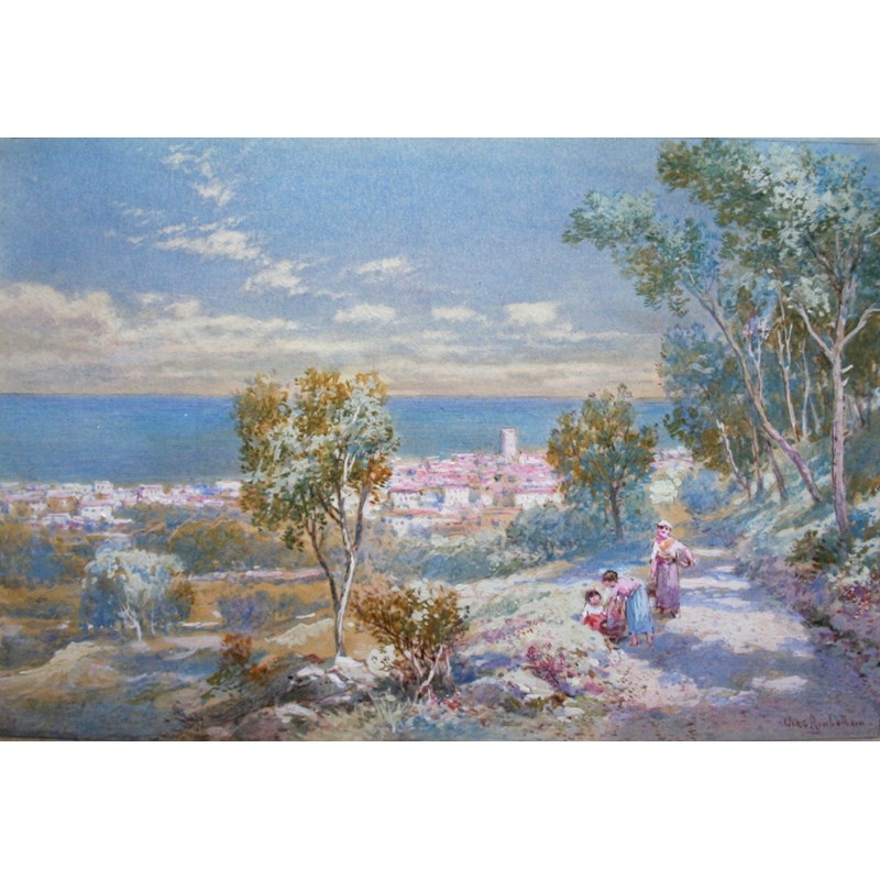 CHARLES ROWBOTHAM (1856-1921) AT ANTIBES, FRENCH RIVIERA Signed, bears inscription verso, watercolour and bodycolour, on card, unframed 12.5 x 19cm.