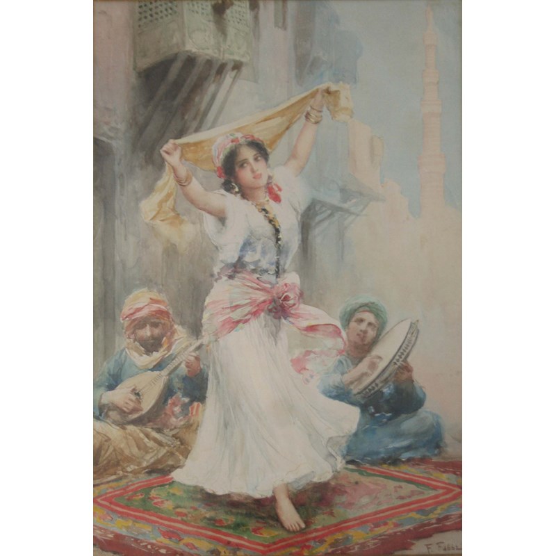 ‡FABBIO FABBI (1861-1946) THE ARAB DANCER Signed, watercolour 43.5 x 29cm.