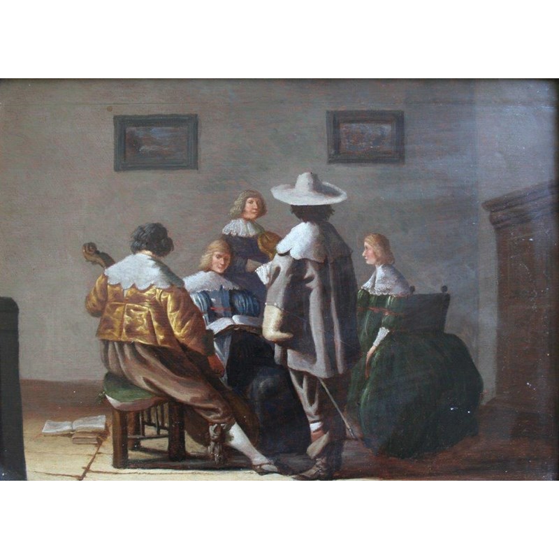 FOLLOWER OF ANTHONIE PALAMEDESZ. (1601-1673) A MUSICAL PARTY Oil on panel 28.5 x 40cm.