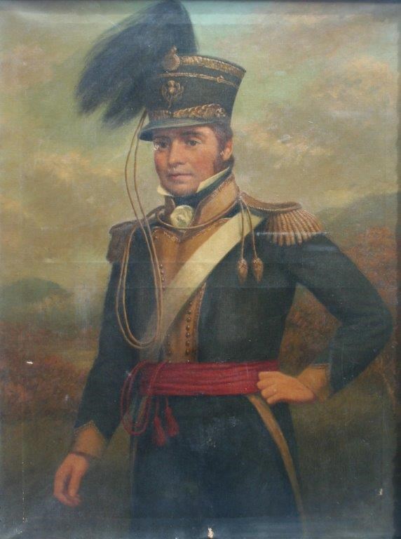 FOLLOWER OF SIR JOHN WATSON GORDON (1788-1864) PORTRAIT OF A YEOMANRY OFFICER Standing, long half length, in uniform, oil on canvas 125.5 x 95.5cm.