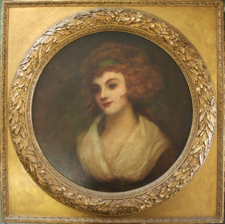 Inscribed on the lining verso Original sketch Painting of/ Lady Emma Hamilton/ (made for the large one in the/ National Collection)/ by George Romney, oil on canvas, mounted circular