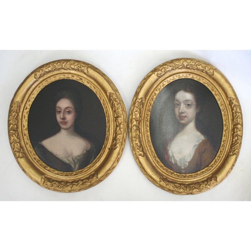 Two, each bust length, each wearing a russet dress, oil on canvas, oval