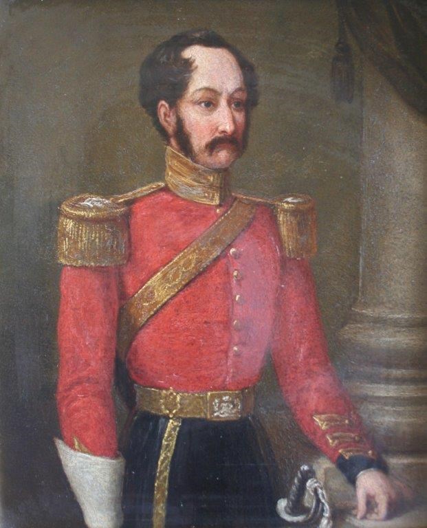 with another half length portrait on board of Colonel Lygon of the 2nd Life Guards, probably over a printed base, 21 x 16cm. (2)