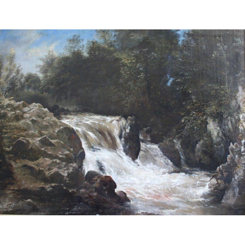 ATTRIBUTED TO JOHN GENDALL (1790-1865) WATERFALL AT BRENT, DEVON Oil on canvas 55.5 x 73.5cm.