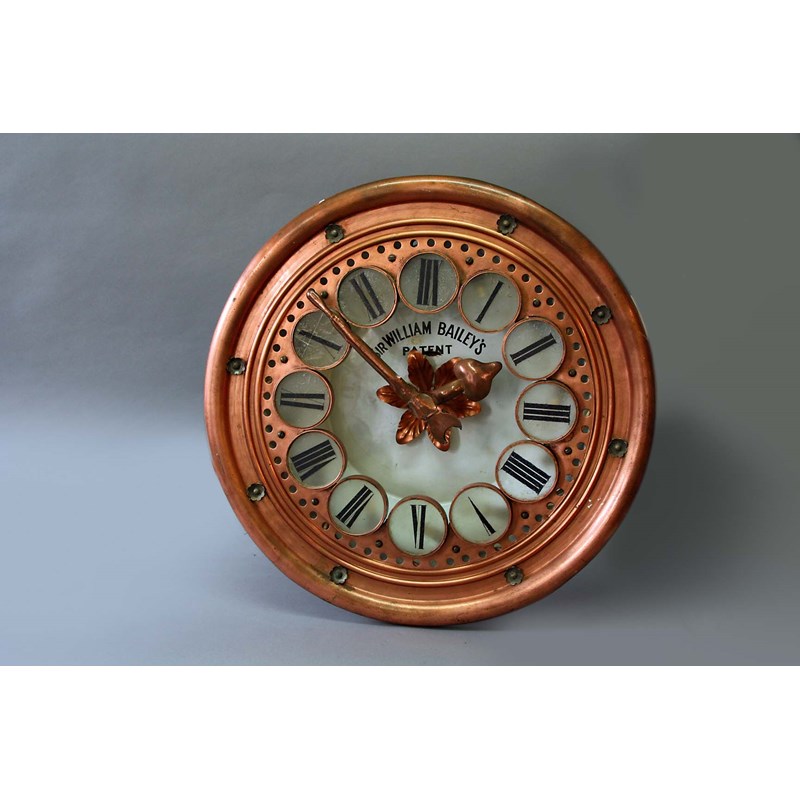 A SIR WILLIAM BAILEY COPPER ARTS AND CRAFTS WALL CLOCK movement chain fusee, platform escapement and electrical illumination for the numerals, 26 1/2ins. (67cms.) dia.