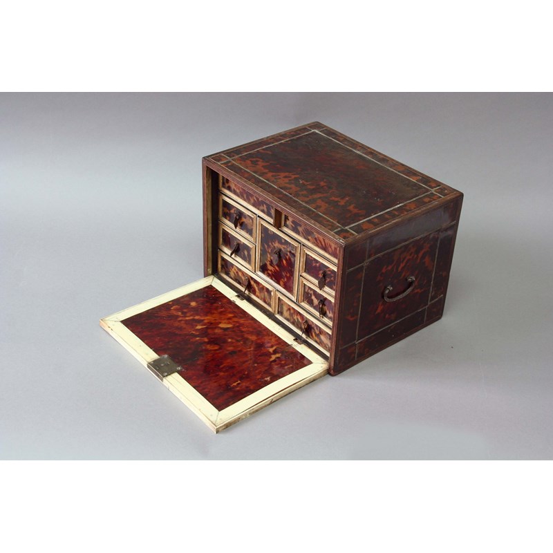 A 17TH CENTURY INDO PORTUGESE TORTOISESHELL TABLE CABINET