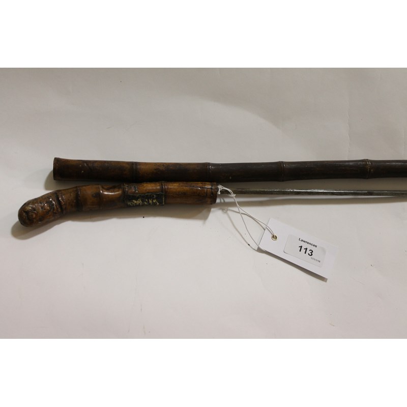 A SWORDSTICK. A cane swordstick or dagger, with short stabbing 10.1/2" blade of diamond form.