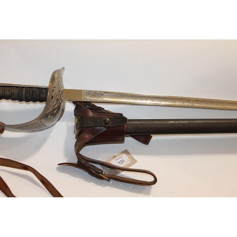 A QE11 cypher 1897 pattern officers sword, complete with swordknot and scabbard. The German made blade by Carl Eickhorn with Squirrel mark, in very clean condition. The QE11 cypher is also in the very clean and crisp hilt, the brown leather field scabbard complete with sword frog.