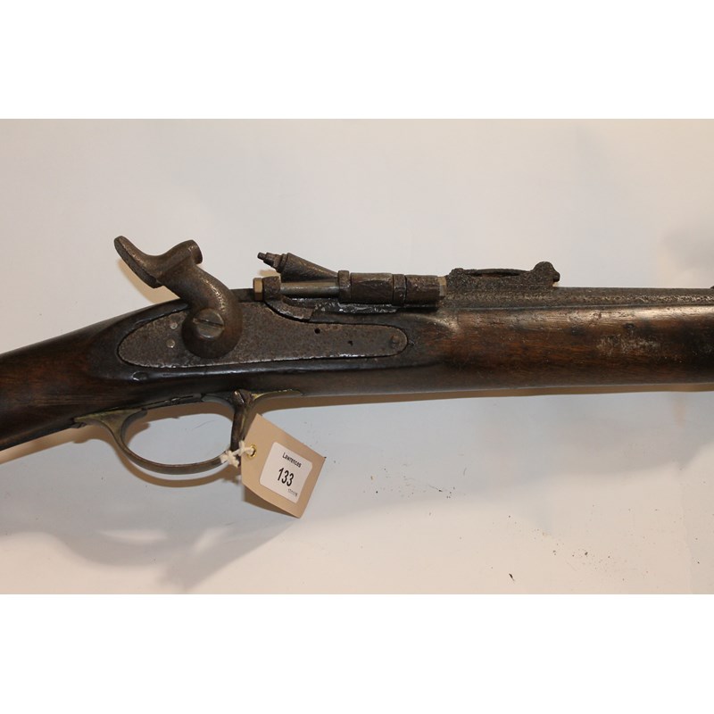 A Snider rifle in a semi-excavated condition, lacking its trigger and part of the guard. Non original slider bar fitting, rust overall evident and a percussion nipple fitted. In need of renovation/restoration, with 39" barrel also lacking its metal cleaning rod.