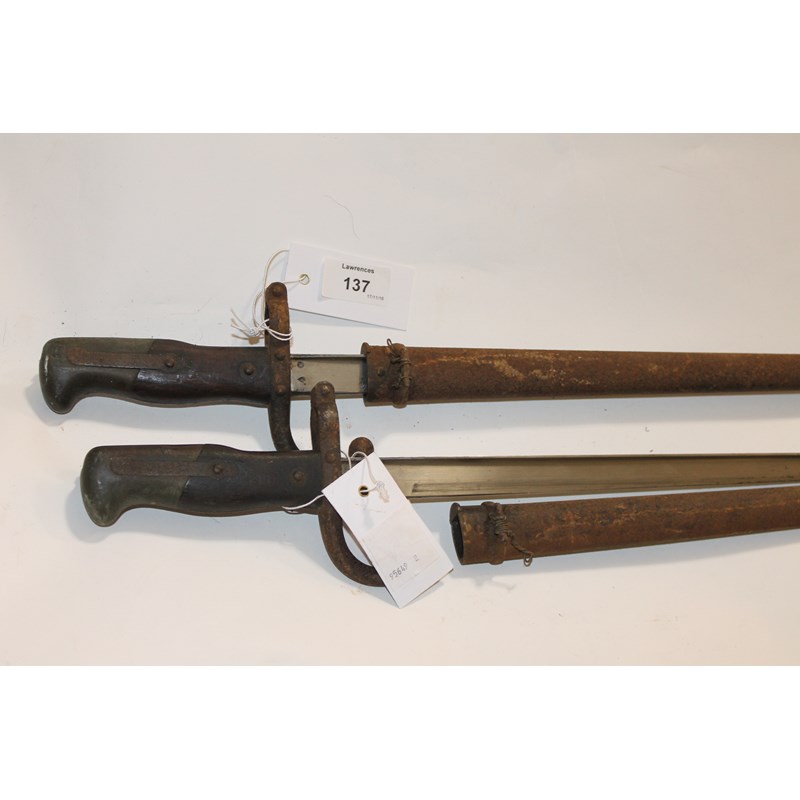 TWO FRENCH BAYONETS. Two 1874 pattern French Bayonets ans scabbards, both dated St Ettiene 1879.