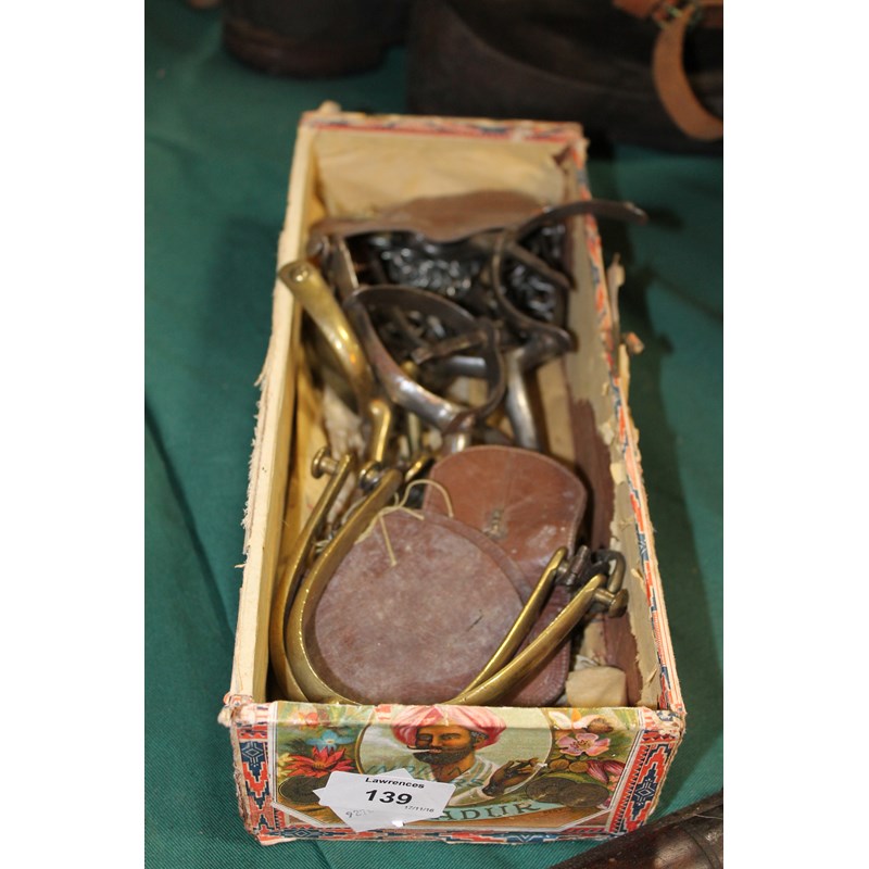 OFFICERS SPURS etc. Five pairs of Officers spurs in brass or nickel, with some pads and chains present.