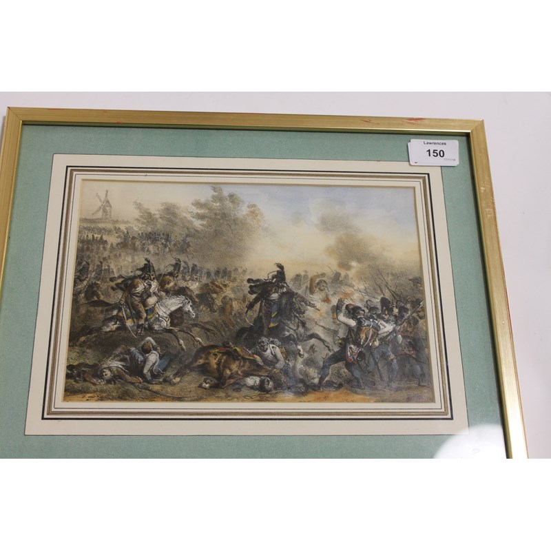 A framed fourth print of a Cavalry Charge (Hussars) against French Infantry, 15" x 11.3/4". (4)