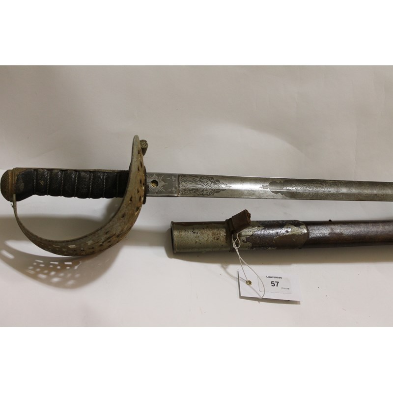 An 1896 Cavalry Officers sword with 35.1/2" clean blade with VR cypher below an Imperial Crown. A covering of rust over the pierced guard, Robt Mole & Sons Birmingham, Makers to the War & India Office on the blade. Numbered M4340.