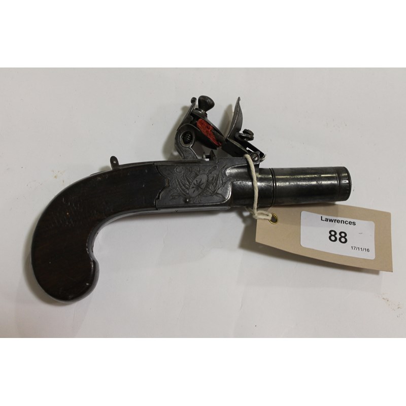 A 'TART' FLINTLOCK TRAVELLING PISTOL.