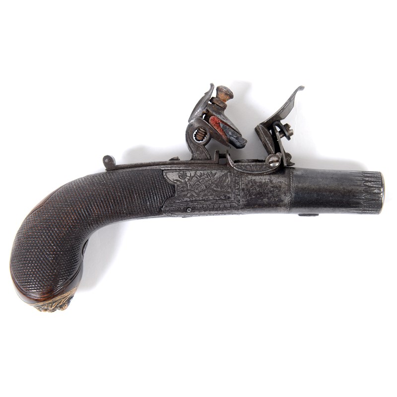 A FLEWITT FLINTLOCK POCKET PISTOL.