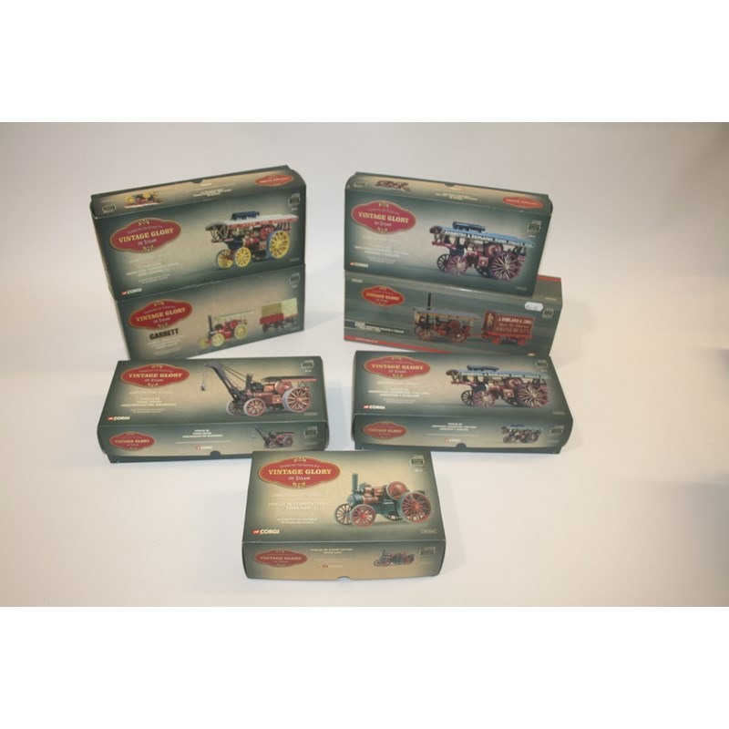 7 boxed models, CC20309 Garrett Showmans Tractor, CC80101 Fowler B6 Locomotive, CC80307 Garrett Road Tractor, CC80103 Fowler B6 Super Lion, CC80111 Fowler B6 Stump Cutter, CC80101 John Fowler B6 Locomotive, and CC80108 John Fowler Crane Engine. (7)