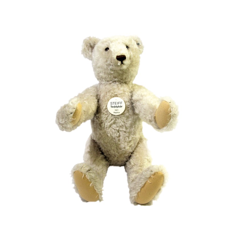 a large white mohair Teddy Bear, Teddybar 1921 Replica. With a white label and button and growler mechanism, no box or certificate. 74cms high