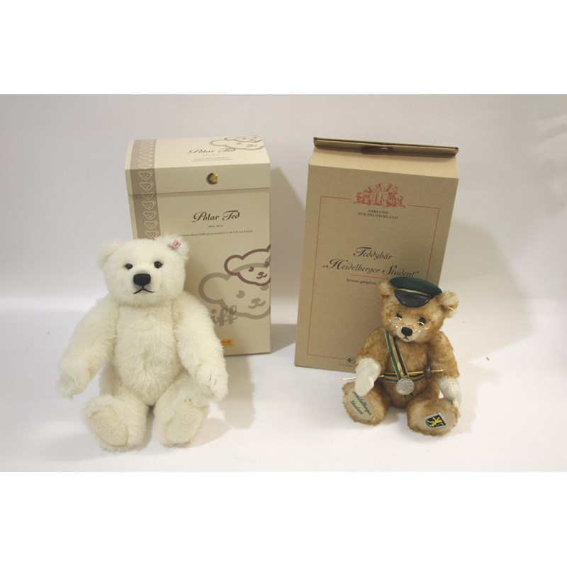a modern Steiff Bear Heidelberger Student, No 265 of 2000 and with a box and certificate. With another boxed Steiff Bear Polar Ted, No 1488 of 2000 and with a box and certificate. (2)