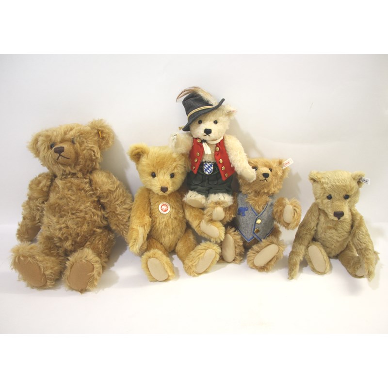 5 modern Steiff Bears including Club Edition 2000, Oktoberfestbaer 2004, Teddybar 38, and 2 other Bears. No boxes or certificates. (5)