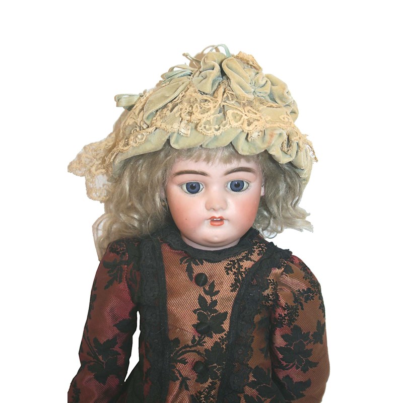 a large doll with weighted blue eyes, open mouth and pierced ears. With a jointed composition body. Marked, S & H, 1079, Dep. 23 1/2ins (60cms) high