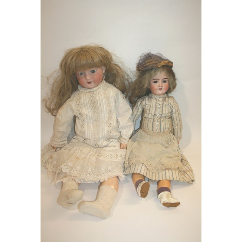 two Armand Marseille 390 dolls, the larger doll with weighted blue eyes and open mouth. Both dolls with damages. Larger Doll 28ins (71cms) high. (2)
