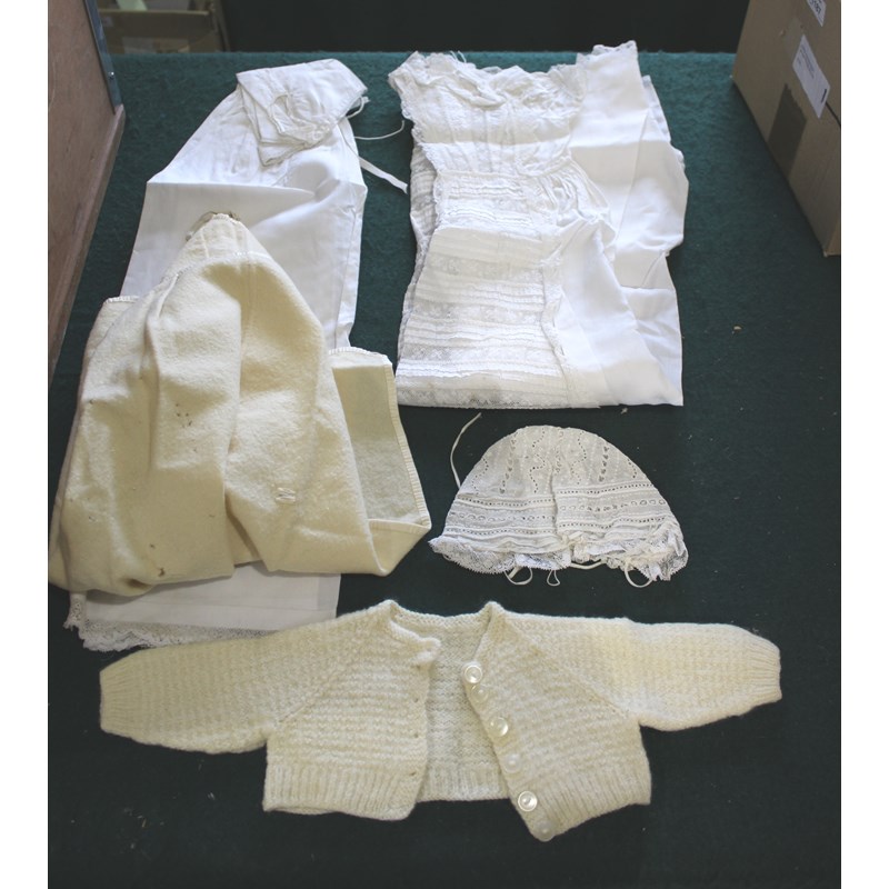 EARLY DOLLS CLOTHING a qty of early dolls clothes circa 1865, including a gown, petticoat etc.