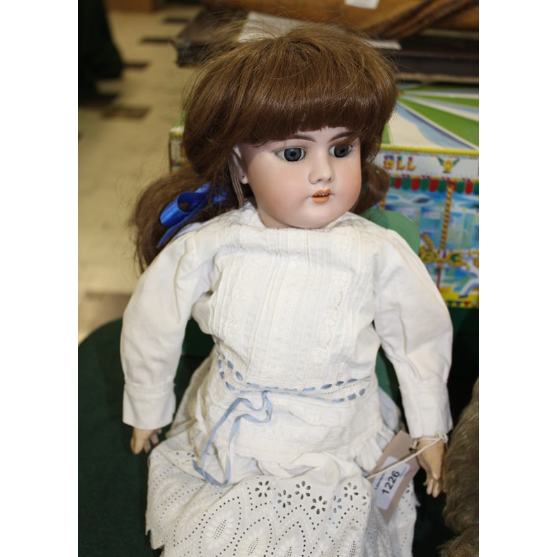 HANDWERCK GERMAN DOLL the doll with fixed blue eyes, open mouth and pierced ears. Marked, Handwerck, , 99, 3, Dep, Germany. 23ins (58cms) high