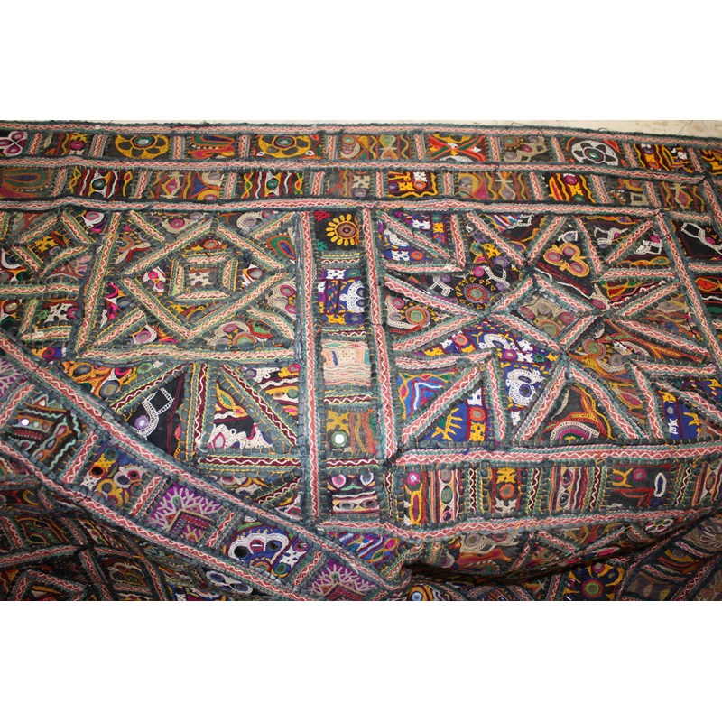 A C19TH INDIAN MIRROR EMBROIDERED WALL HANGING Probably made in Gujurat using the kutch mirror worked embroidery. Wall hanging 98" x 68". (1)