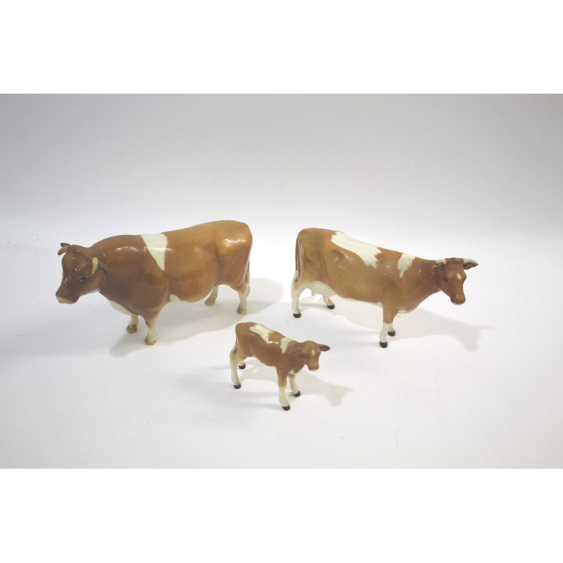 BESWICK - GUERNSEY BULL, COW & CALF including Model No 1451 Sabrina Sir Richmond Bull, 1248A Guernsey Cow, and 1249A Guernsey Calf. (3)