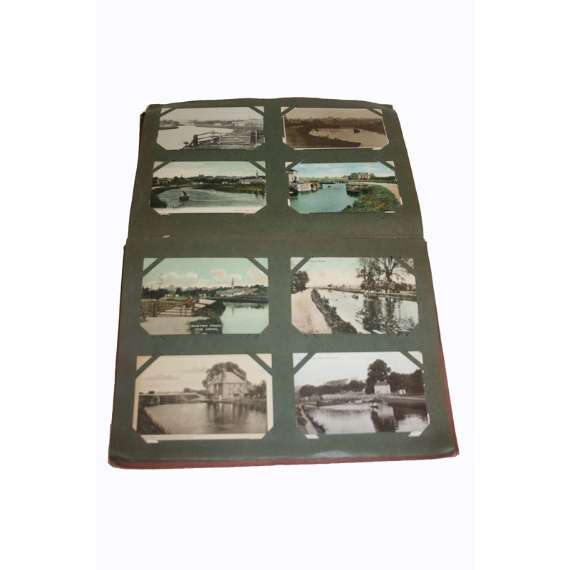 a large album including postcards of Canals, Bridges etc. Including Turf Lock Exmouth, Exeter from the Canal (various), Quay and Rope Ferry Exeter, Topsham, Bude Canal (various), Wreck of the Crystal Spring Bude, Swing Bridge Bude, Sports at Bude, Bude Harbour, Weybridge, West Byfleet, Woking Canal, German Prisoners at work (Canal Boat), Frimley Green, Ash Vale Canal, Aldershot Canal, Fleet Canal and many more.