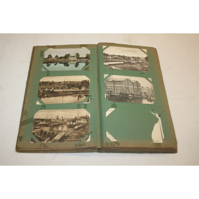 4 albums including postcards of Canals, Docks and Bridges. Including, Severn Bridge, Avonmouth Dock, Gloucester Docks, Sharpness Docks, Gloucester Timber Yard Fire 1907, New Haw Lock, Guildford (various views), Weybridge, Chichester, Arundel, River Lea Clapton, Enfield Lock, Waltham Abbey, Broxbourne Bridge, Hoddesdon, Hertford Lock, Harlow Lock, Unloading the Barge Bishop Stordford, Aylesbury Canal, Grand Junction Canal, and many more. (4)
