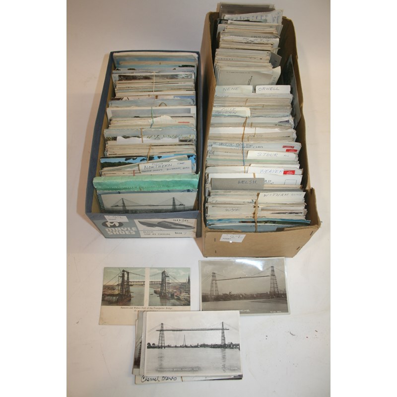 a large qty of loose postcards, including Bridges and Rivers (Transporter Bridge Newport, Runcorn, Widnes Bridge, The Bridges Sunderland, Ferry Hartlepool, Sheldon Bridge, Truro & River, The Ferry Saltash, Old Exe Bridge, Wye Ferry, Symonds Yat, Kerne Bridge Monmouth, and many more), and various other GB cards.