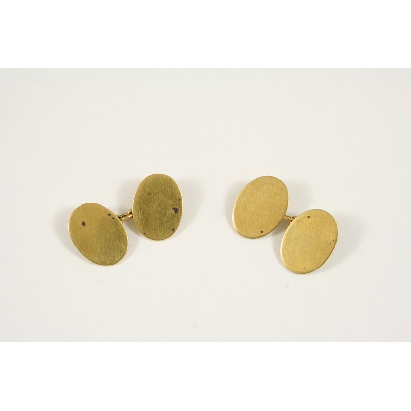 A PAIR OF 18CT. GOLD CUFFLINKS of oval, plain form, 12 grams.
