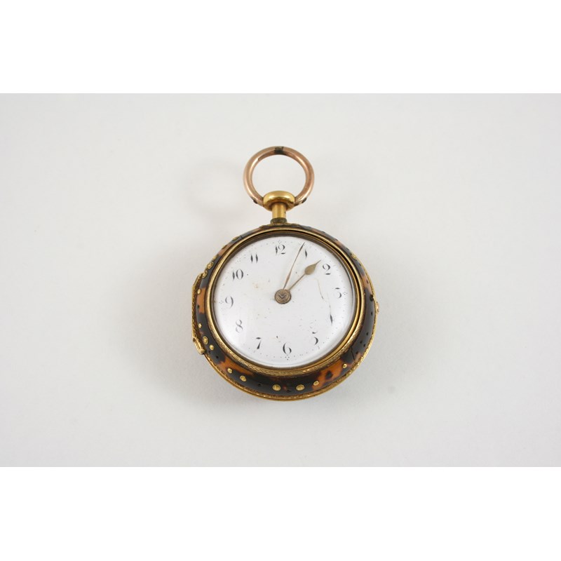 The movement appears to have had its push repeating mechanism removed, gilt dust cover signed Geo Graham London, 50mm. dia.