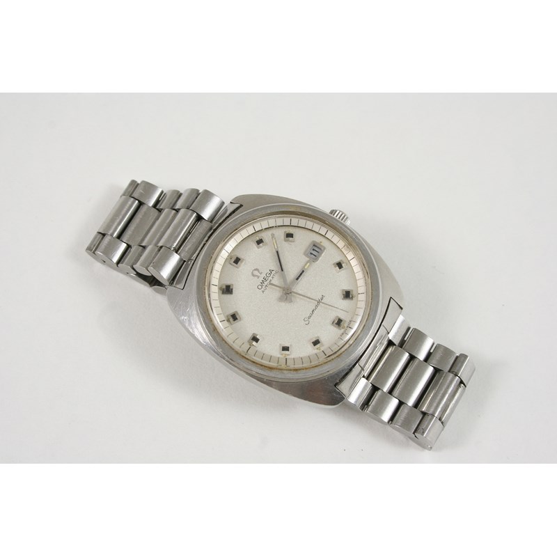 the signed circular dial with date aperture, on an Omega bracelet with deployant clasp, 40mm. dia.