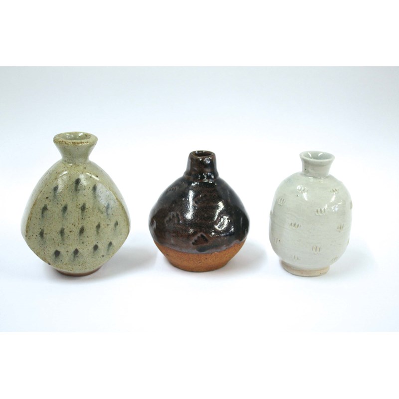 a small stoneware vase with a celadon glaze and spotted decoration, also with another small stoneware vase by Bill Marshall (both made at St Ives). Also with a small vase by Bill Marshall, with incised decoration and dated 2001. Tallest 5ins (12.5cms) high. (3)