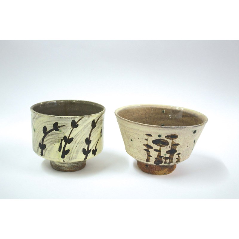 the stoneware bowl painted with a leaf design on a cream glaze, also with another bowl by Bill Marshall (small repair to the rim). Both with impressed seal marks for Bill Marshall. 4 1/4ins (11cms) high. (2)