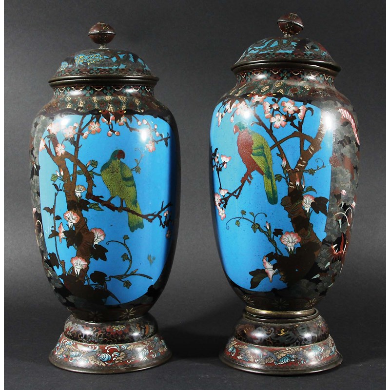 worked in silver wire, with panels of cranes and parrots on a dragon and cloud ground, the cover and foot with further birds and insects, 37cm (4)