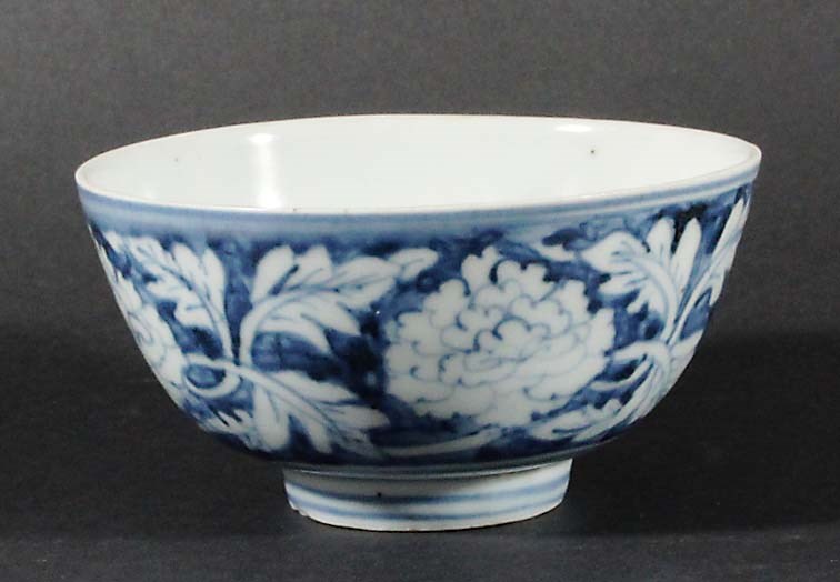 CHINESE BLUE AND WHITE BOWL, possibly 17th century, painted with chrysanthemum and scrolling foliage, diameter 12.5cm