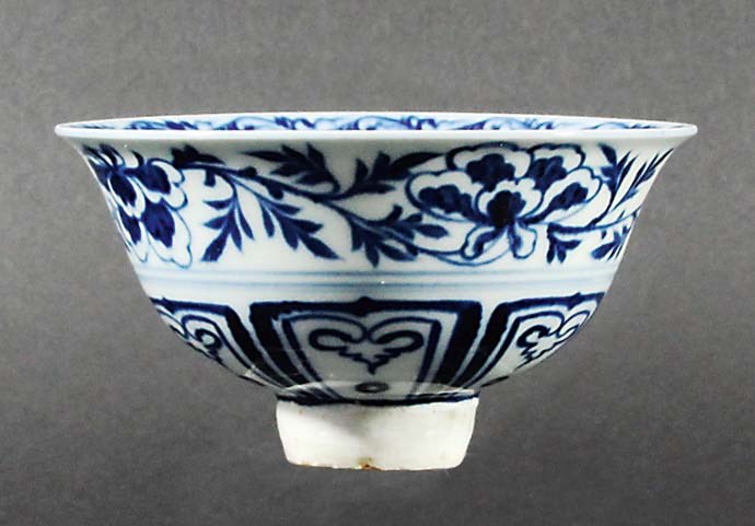 CHINESE BLUE AND WHITE FOOTED CUP,