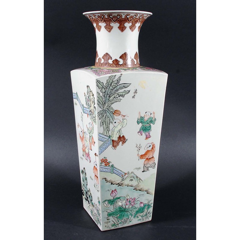 CHINESE FAMILLE ROSE VASE, 20th century, of square section decorated with children playing, height 42cm