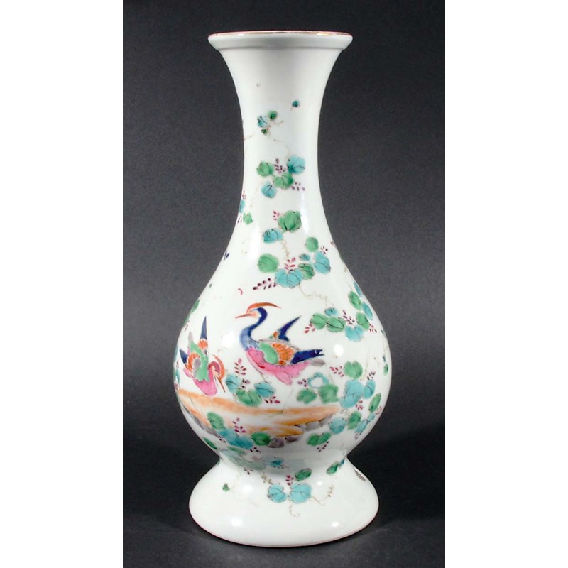 CHINESE BALUSTER VASE, possibly 18th century, enamelled with a pair of exotic birds amongst scrolling foliate, brown painted mark, height 31cm