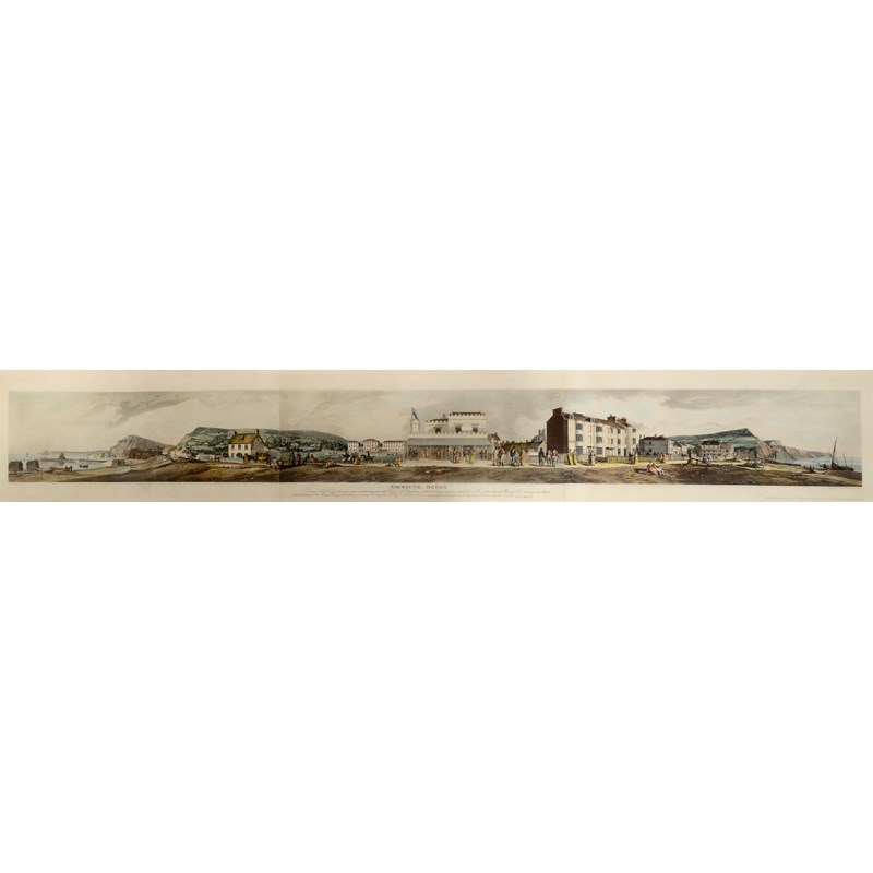 Aquatint with hand colouring, published by J. & S. Harvey (Sidmouth) and by J. & E. Wallis (London), 1840, a 20th Century restrike, on three joined sheets