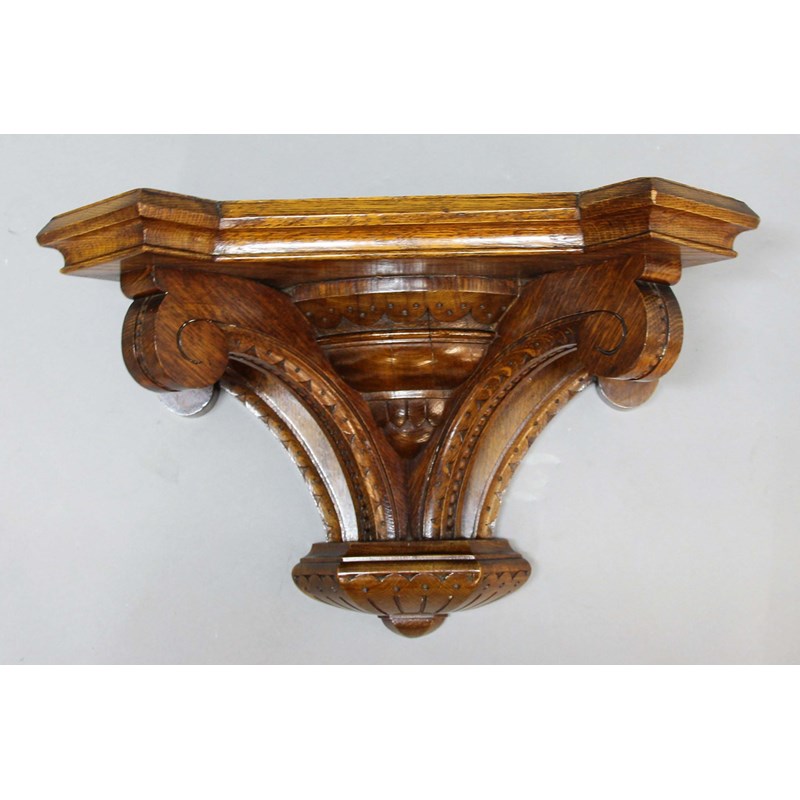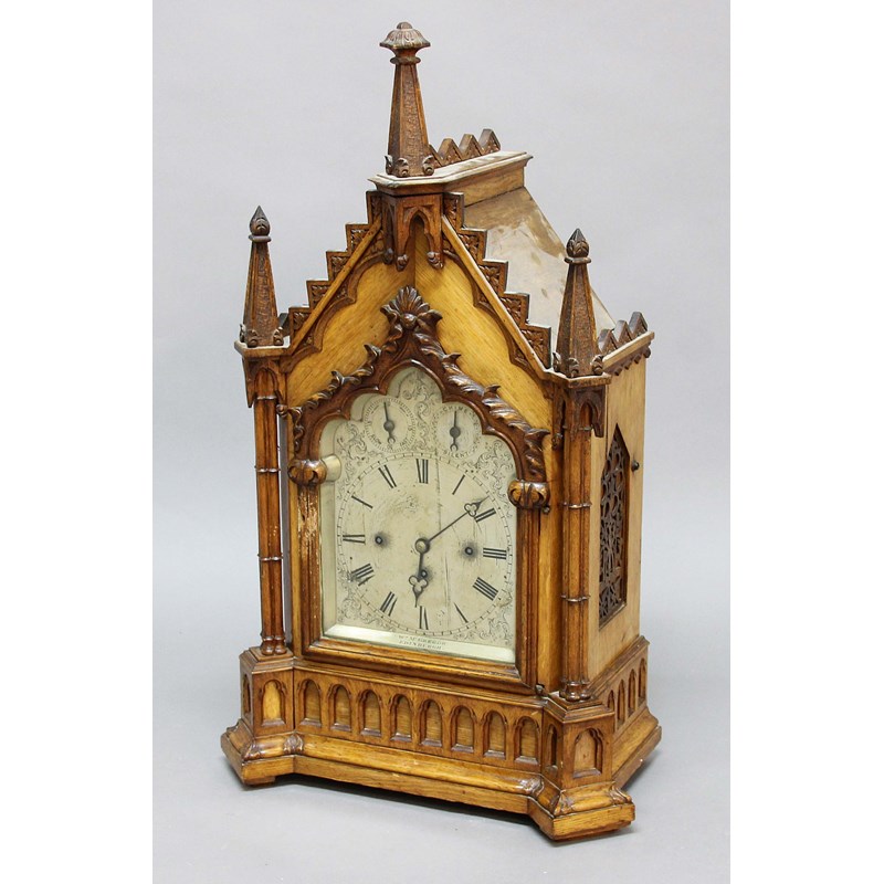 SCOTTISH GOTHIC STYLE OAK BRACKET CLOCK AND BRACKET,
