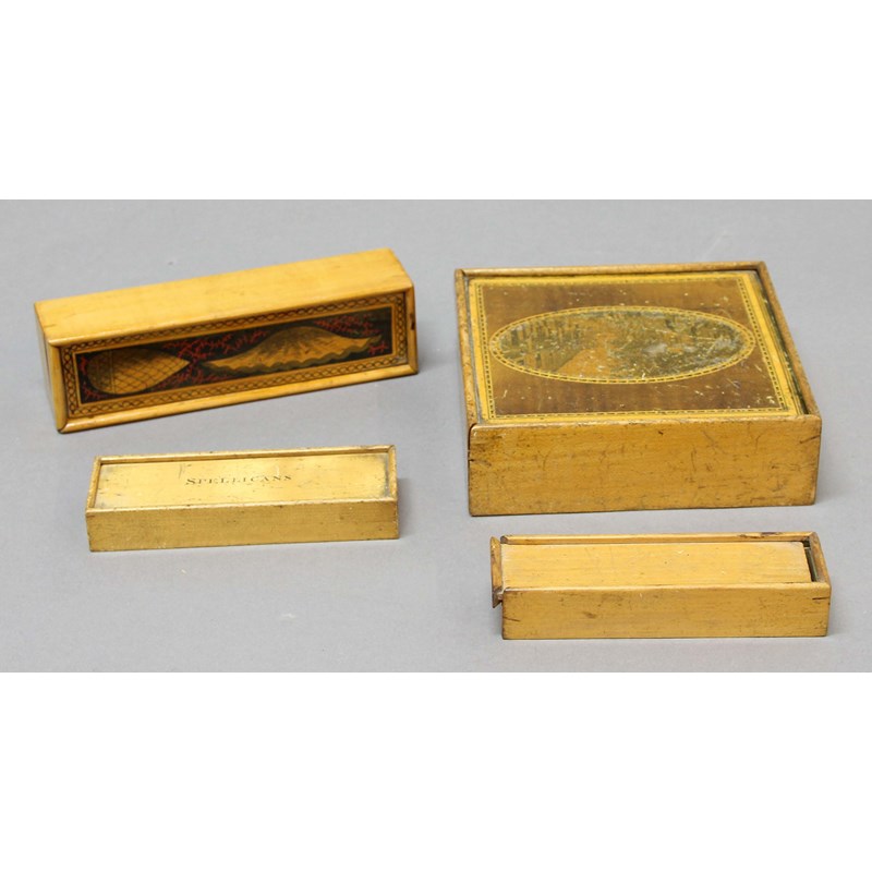 COLLECTION OF FOUR TUNBRIDGE WARE BOXES,
